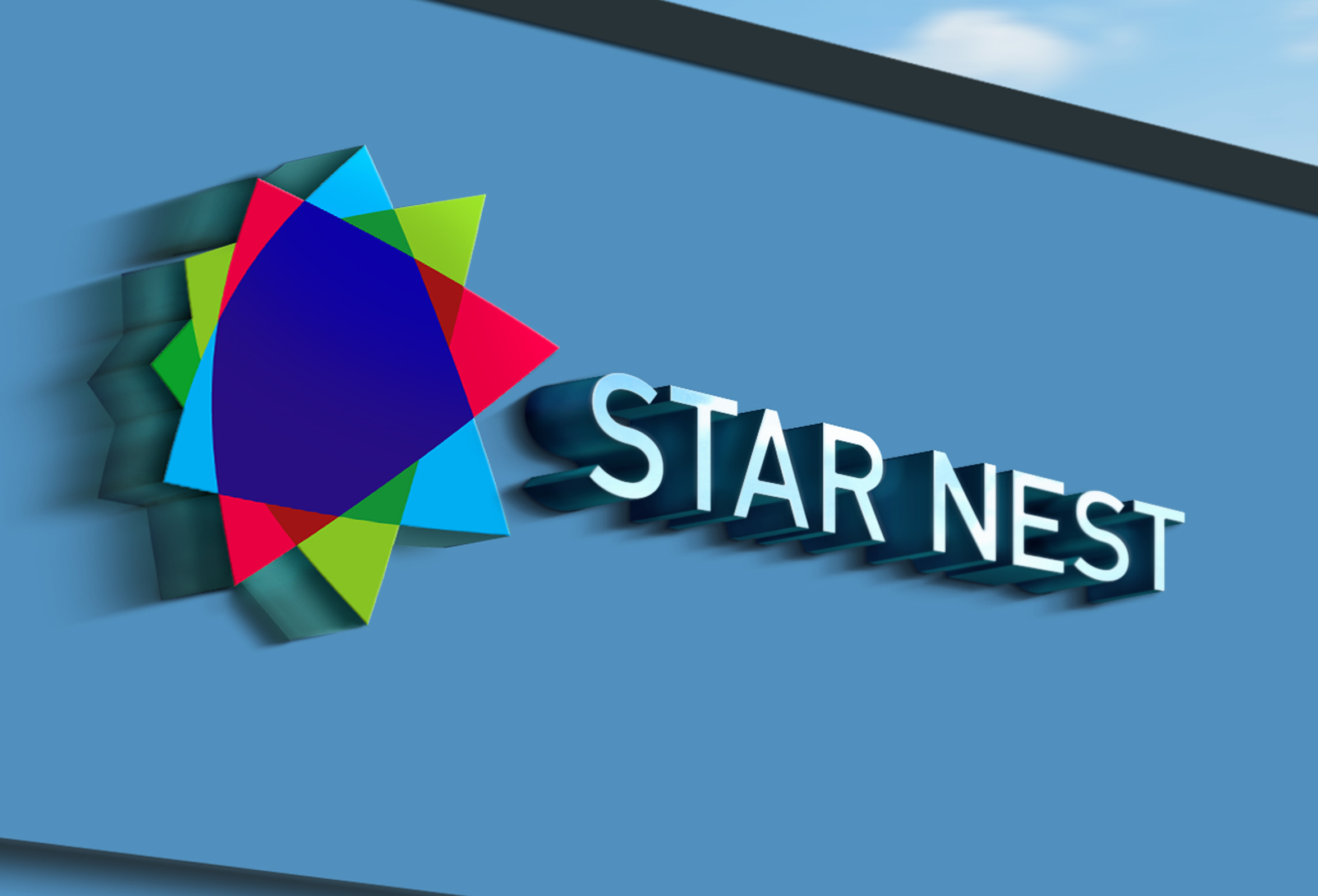 標識采用多色彩的幾何圖形構成星形,色彩明快且具有現代感,不同圖形的疊加營造出空間感,展示出企業探索和領先的特質。英文 “STAR NEST” 簡潔現代,與圖形搭配和諧。