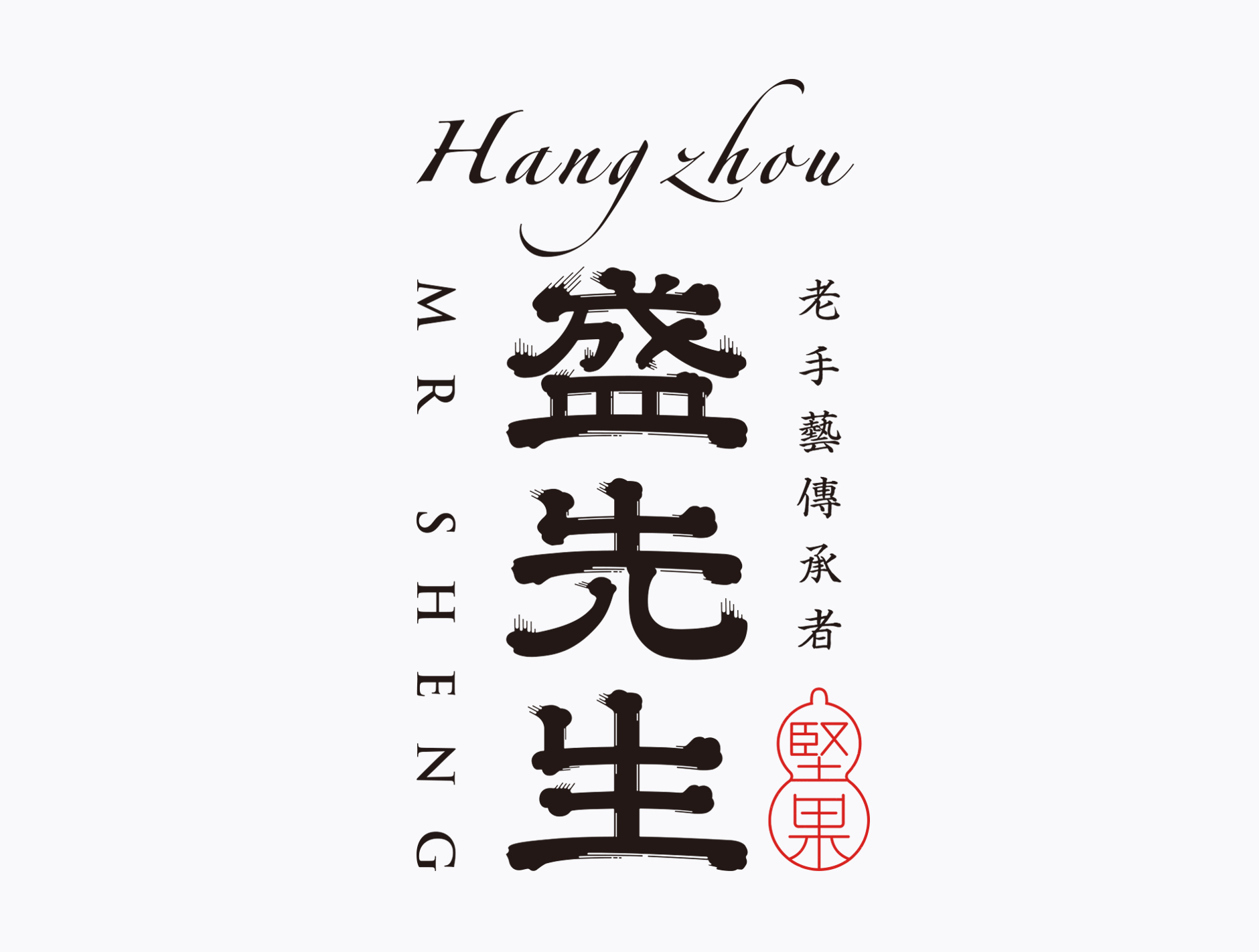 “盛先生” 采用書法筆觸風格,筆畫粗細變化富有動感,實現了傳統與現代設計的融合,黑色字體穩重可靠,彰顯品牌專業性。英文 “Mr Sheng” 與 “Hangzhou” 為手寫體,與中文風格呼應,“Hangzhou” 點明品牌所在地杭州,賦予其深厚文化底蘊。