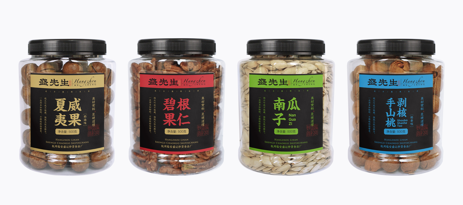 盛先生堅果的創(chuàng)意旨在打造傳統(tǒng)與現(xiàn)代融合的特色品牌。品牌名稱 “盛先生”,采用書法字體呈現(xiàn),彰顯傳統(tǒng)韻味與文化底蘊(yùn),傳達(dá)出品牌對傳統(tǒng)手藝的傳承。“老手藝傳承者” 的定位,更是強(qiáng)化了這一理念,讓消費(fèi)者感受到堅果制作的匠心獨(dú)運(yùn)。