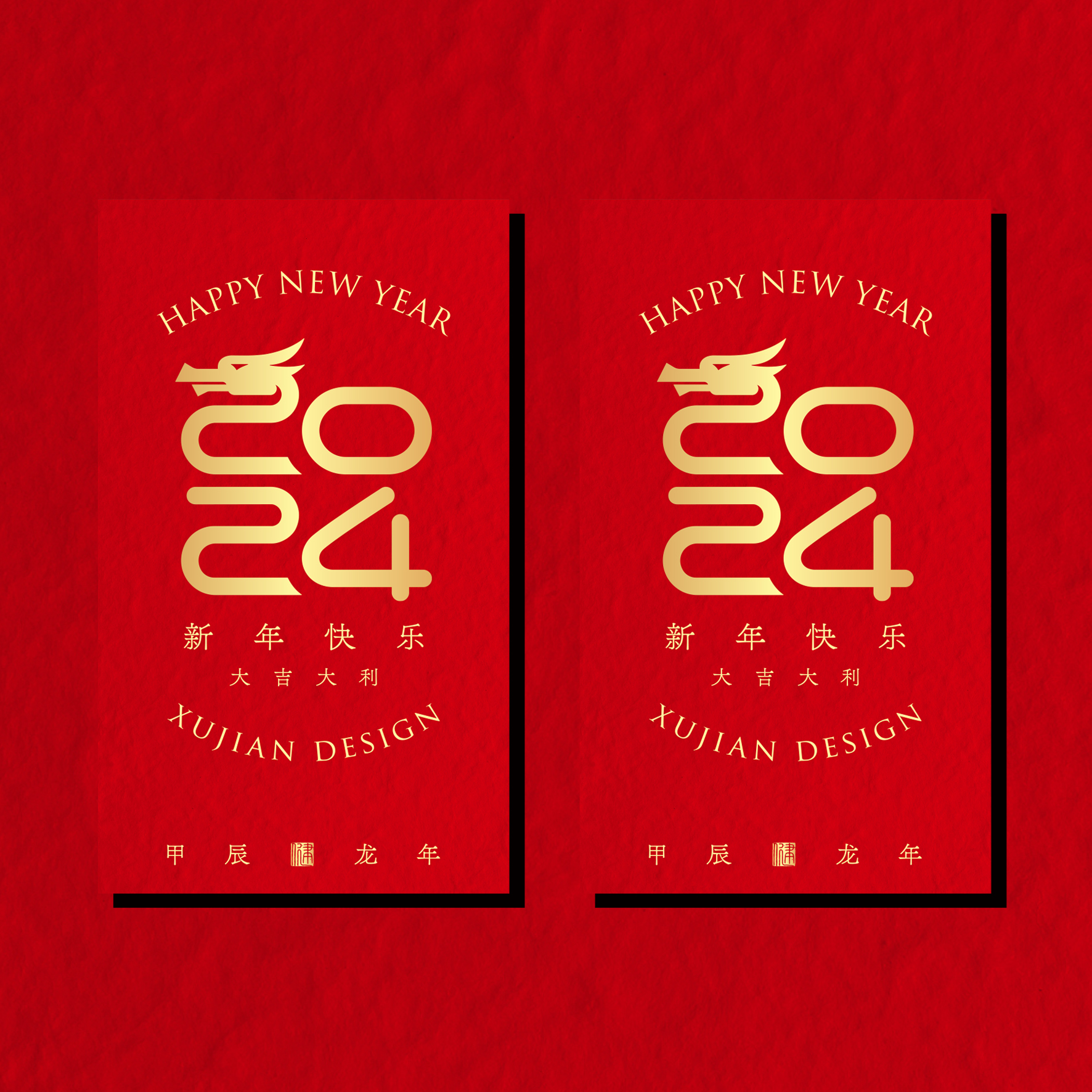 色彩選取上,采用了經典的紅與金搭配。紅色作為底色,濃郁而熱烈,洋溢著新年的喜慶氛圍,是中國傳統佳節的代表色;金色用于描繪龍與數字,彰顯尊貴與華麗,凸顯龍的神圣與不凡地位,同時也寓意著新的一年將充滿希望與輝煌,二者相輔相成,完美詮釋了 2024 龍年的獨特魅力與美好期許。
